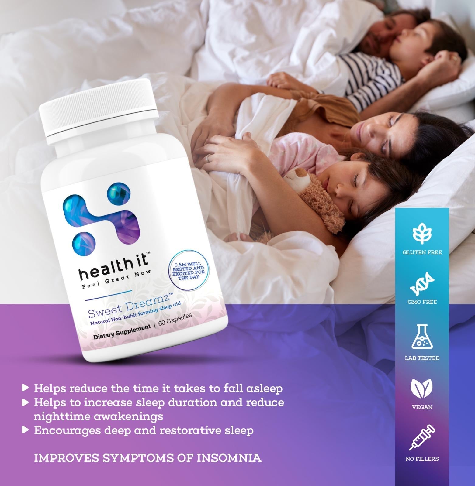 SweetDreamz calms the nervous system and supports deeper, restorative sleep so your body can repair, rebalance hormones, and restore energy overnight.